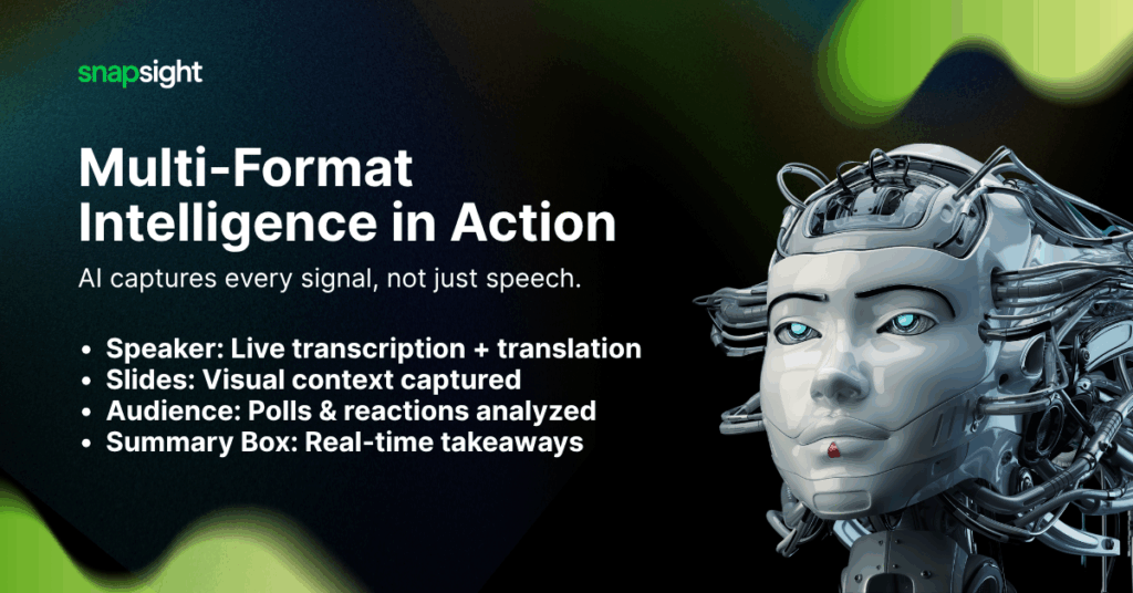 Example in Practice: At a recent tech summit, attendees received summaries that included not just what speakers said, but also key data points from slides and audience poll results – all synthesized into digestible takeaways within minutes of each session ending